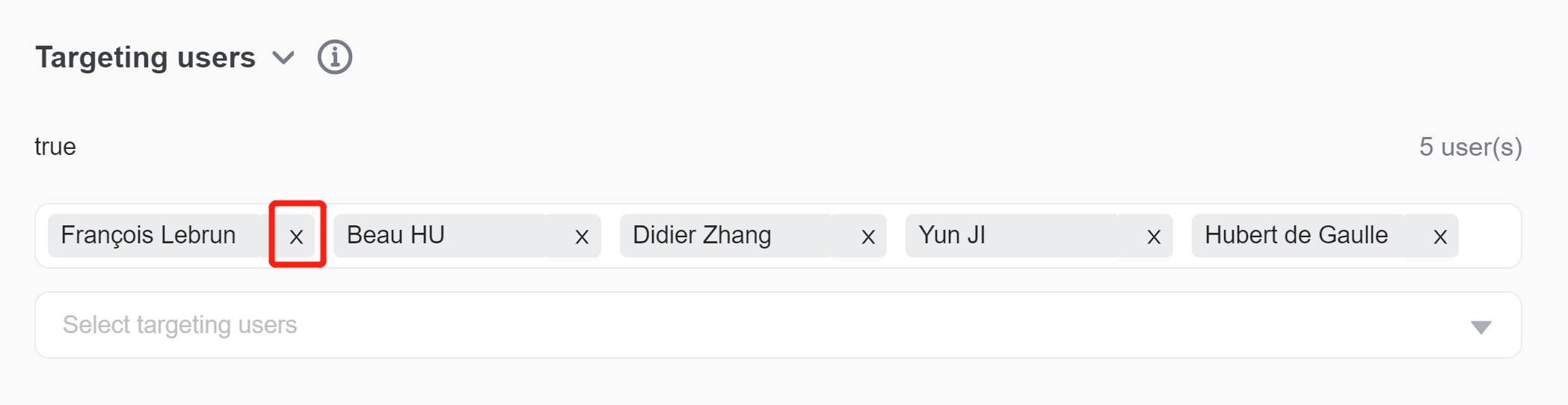 You can remove a user from a flag's targeting list by clicking the user's name. To do this: