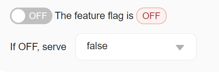 When the toggle is turned off, FeatBit will serve the default off variation for your feature flag. For boolean flags, the default off variation is set to false. For multivariate flags, you select one of your custom variations. You can customize the default off variation for both boolean and multivariate flags in the Targeting tab.