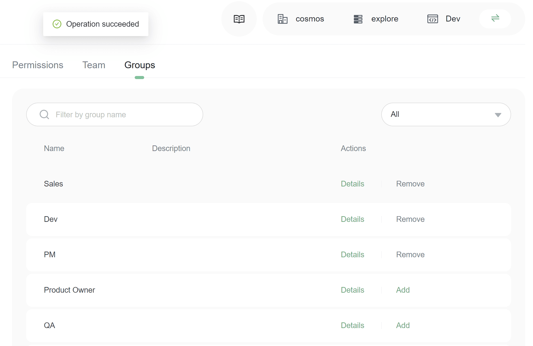 The permission above we created allows members who have this permission to access all resources in product environment of project explore , but those members can't modify resources.