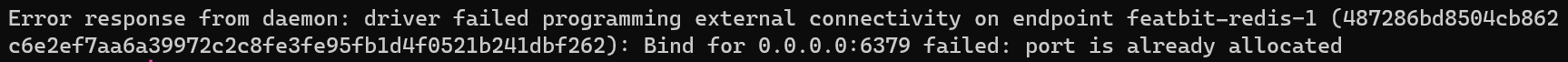 For example, if you already have a Redis container using the host machine's port 6379, when you try to launch our system with docker-compose up -d, you can see the port conflict error from docker daemon like this